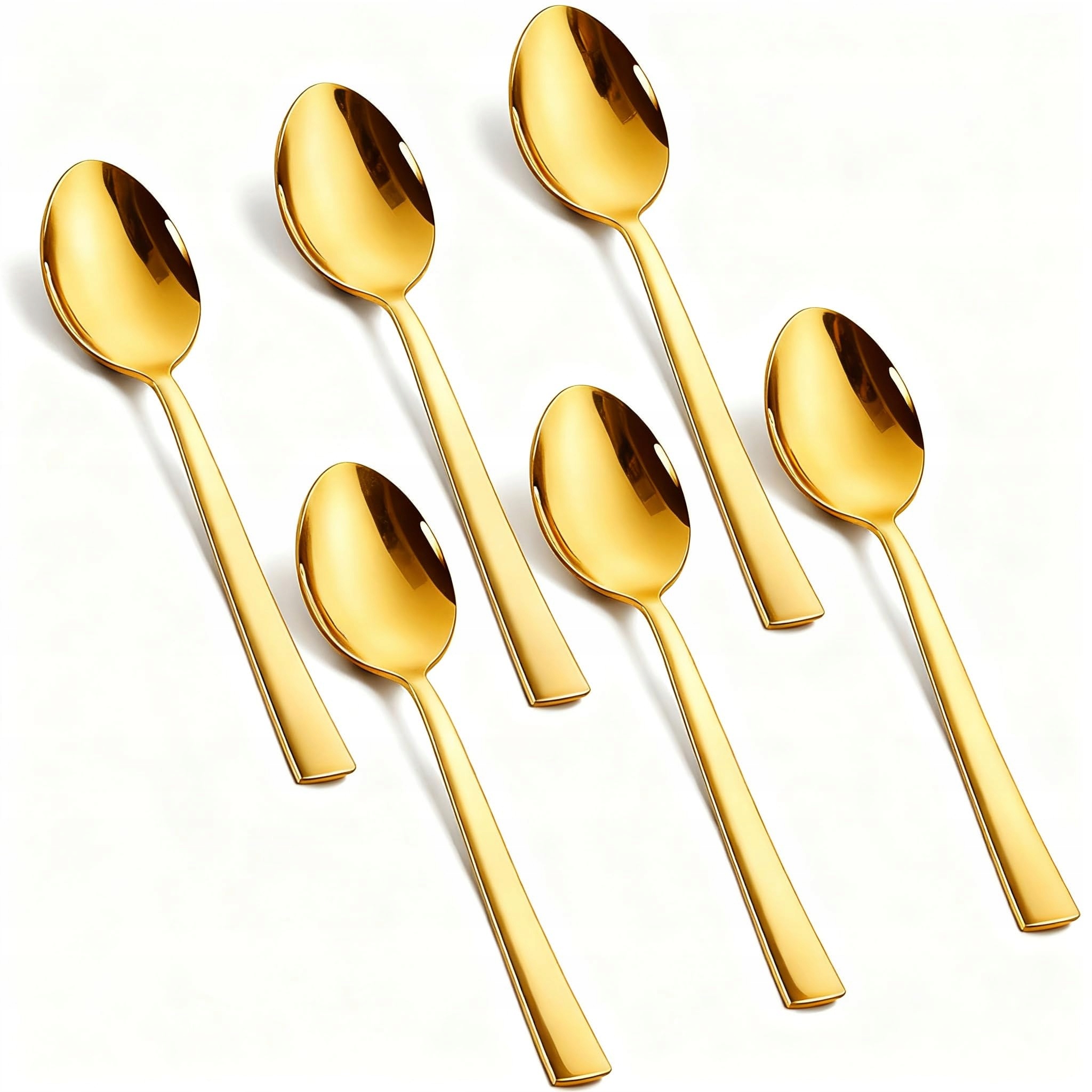 Łyżeczki do herbaty 6 sztuk, stal nierdzewna złote łyżeczki do kawy 5,5 cala (14 cm), sztućce łyżeczki do kawy łyżeczki do espresso łyżeczki do deserów, zestaw łyżeczek do herbaty do gospodarstw domowych, restauracji, stołówek, nadające się do mycia w zmywarce