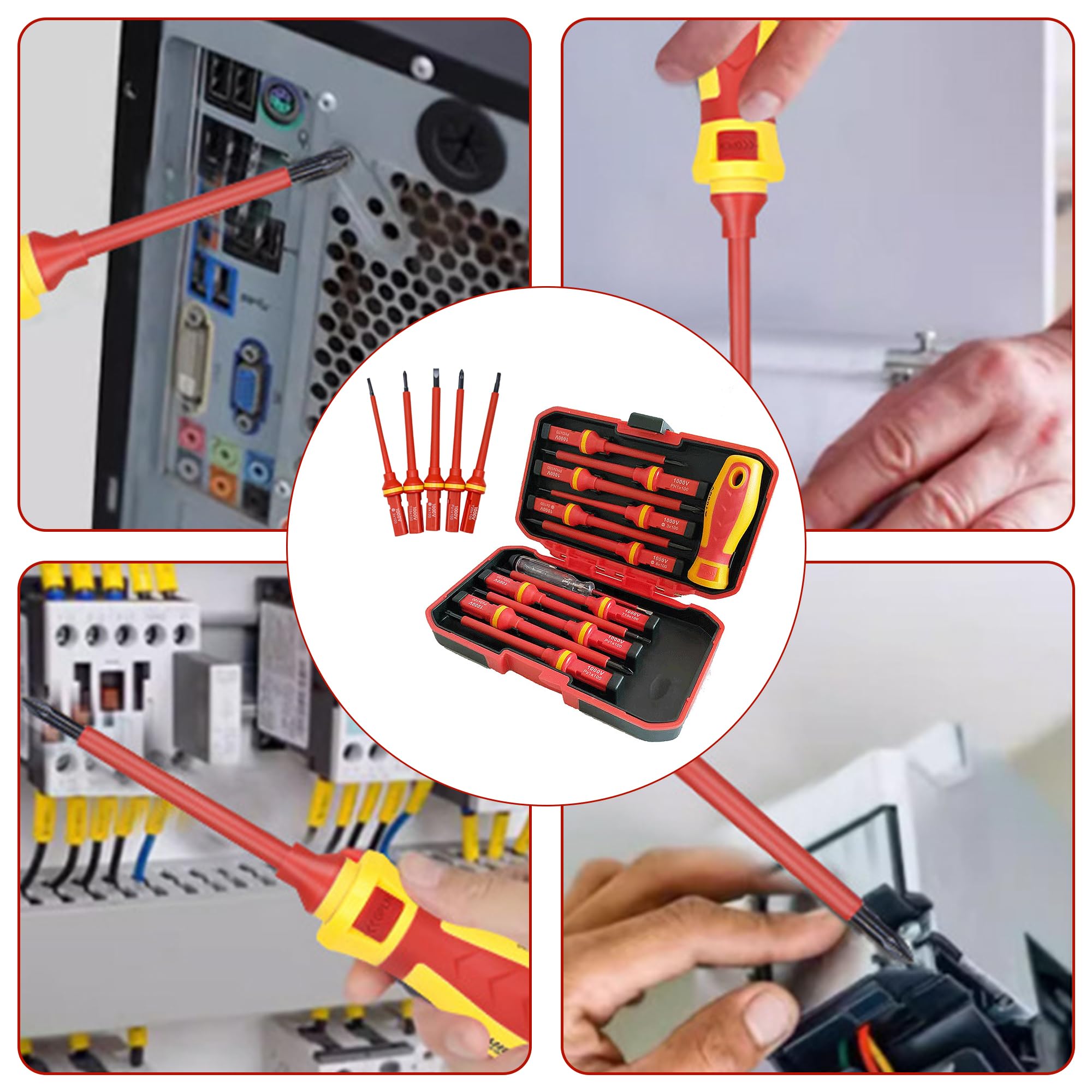 13 sztuk Zestaw izolowanych wkrętaków: Zestaw wkrętaków elektrycznych 1000 V płaskich Torx z testerem napięcia do montażu i demontażu urządzeń elektrycznych