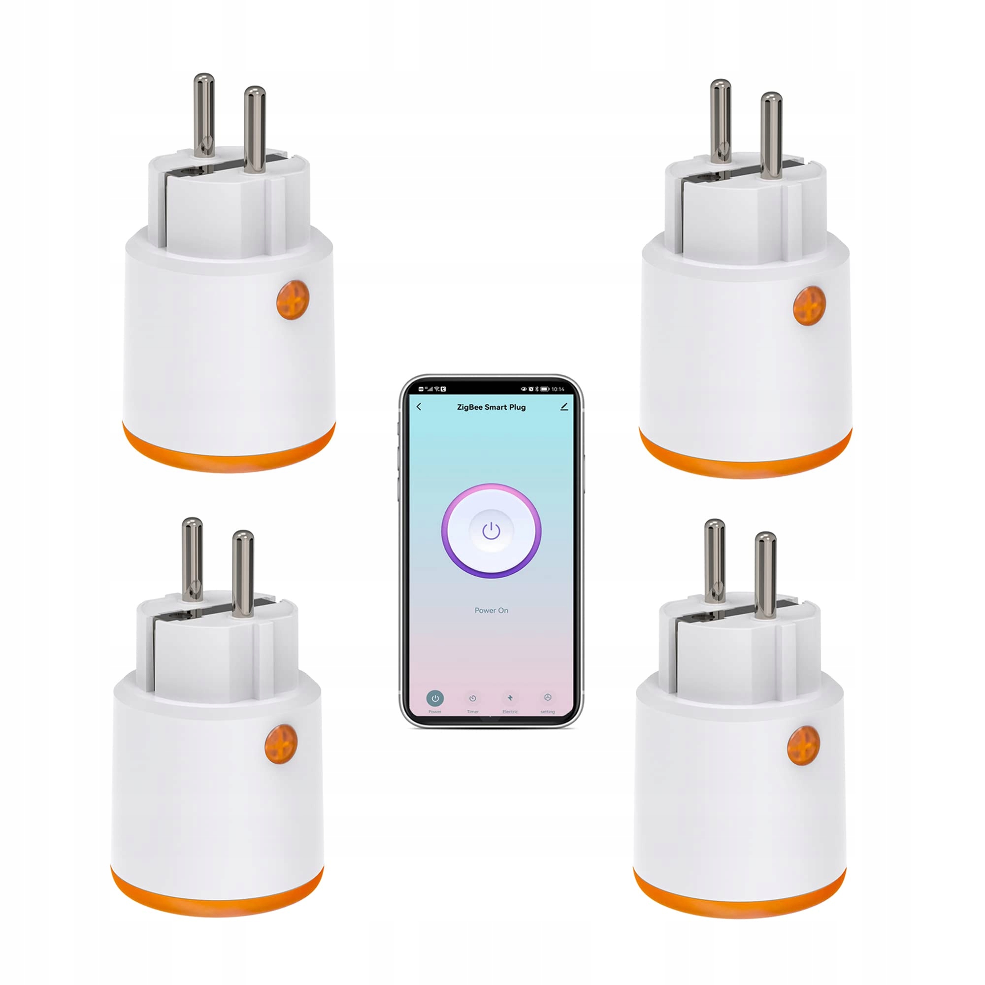 Zdalne sterowanie aplikacją: Możesz doświadczyć różnych zaawansowanych funkcji inteligentnego włącznika tuya smart socket za pomocą aplikacji, zdalnie sterować inteligentnym gniazdkiem w dowolnym miejscu i czasie za pomocą telefonu. (1) Wskaźnik stanu włącz/wyłącz (2) Odrzutnik włącz/wyłącz, timer, cykliczne ustawienia, losowe ustawienia (3) Miernik mocy (4) Ustawienia ① Protokół włącz/wyłącz ② Stan energii ③ Tryb światła ④ Zabezpieczenie dla dzieci (UWAGA: Wymagany hub Zigbee).