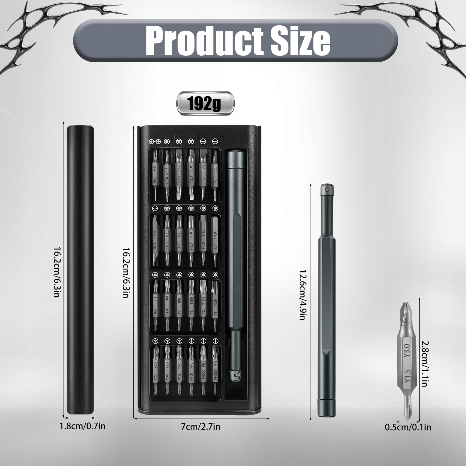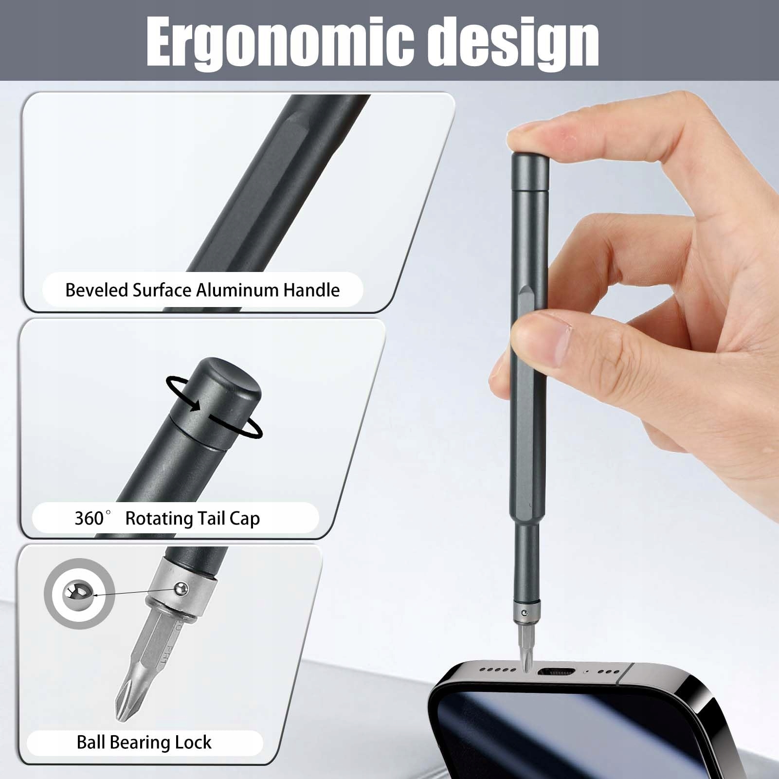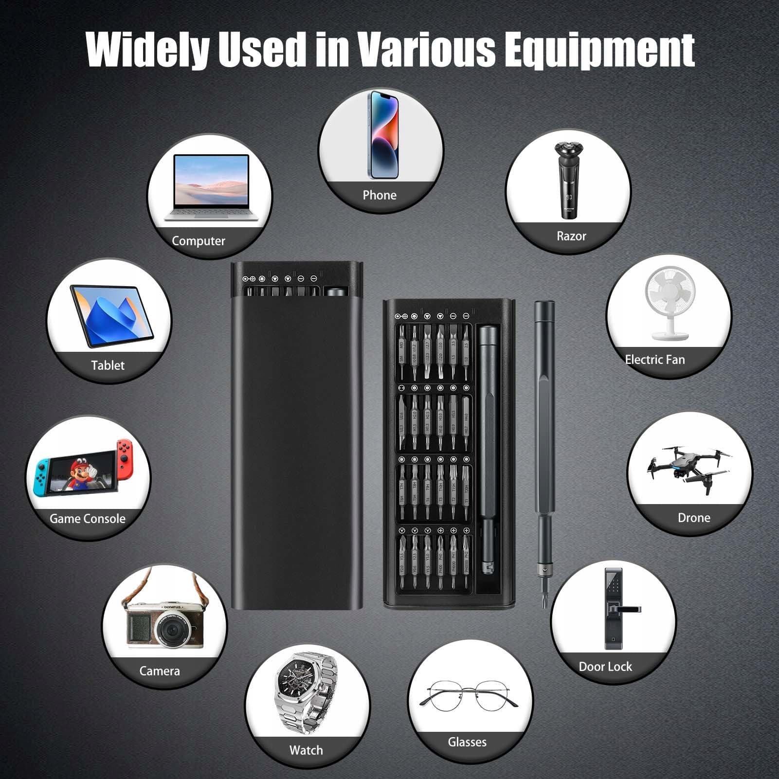 Wysoka kompatybilność: 48 profesjonalnych wierteł jest starannie dobieranych i precyzyjnie dopasowanych, aby zapewnić doświadczenie konserwacji na poziomie profesjonalnym. Zestaw narzędzi precyzyjnych jest specjalnie zaprojektowany do naprawy produktów elektronicznych o wysokiej precyzji, takich jak zegarki, komputery, telefony komórkowe, tablety, okulary, konsole do gier, drony itd. i bez problemu radzi sobie nawet z mikrowkrętami