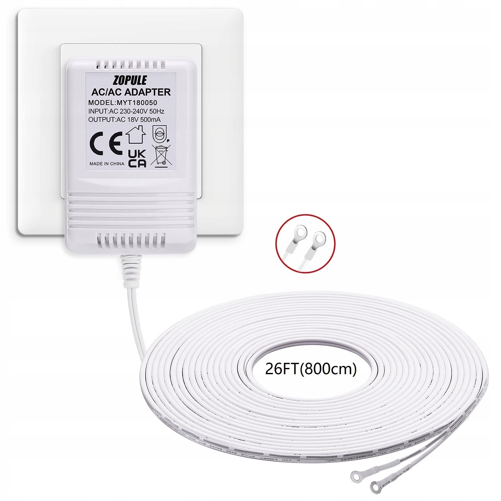 18V 500mA Transformator do dzwonka, zasilacz do wideodomofonu do wszystkich wersji Ring Doorbell, Nest Hello i Wyze Video-Dzwonka, kabel o długości 8M (315").