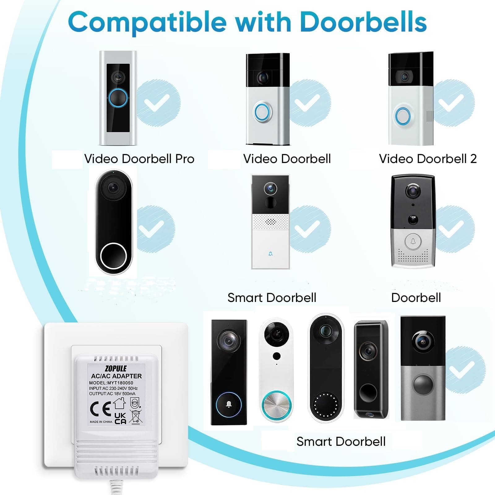 ZOPULE Zasilacz Do Wideodzwonka 18V 500mA Kompatybilny Z Nest Wyze 8M | Premium Supply
