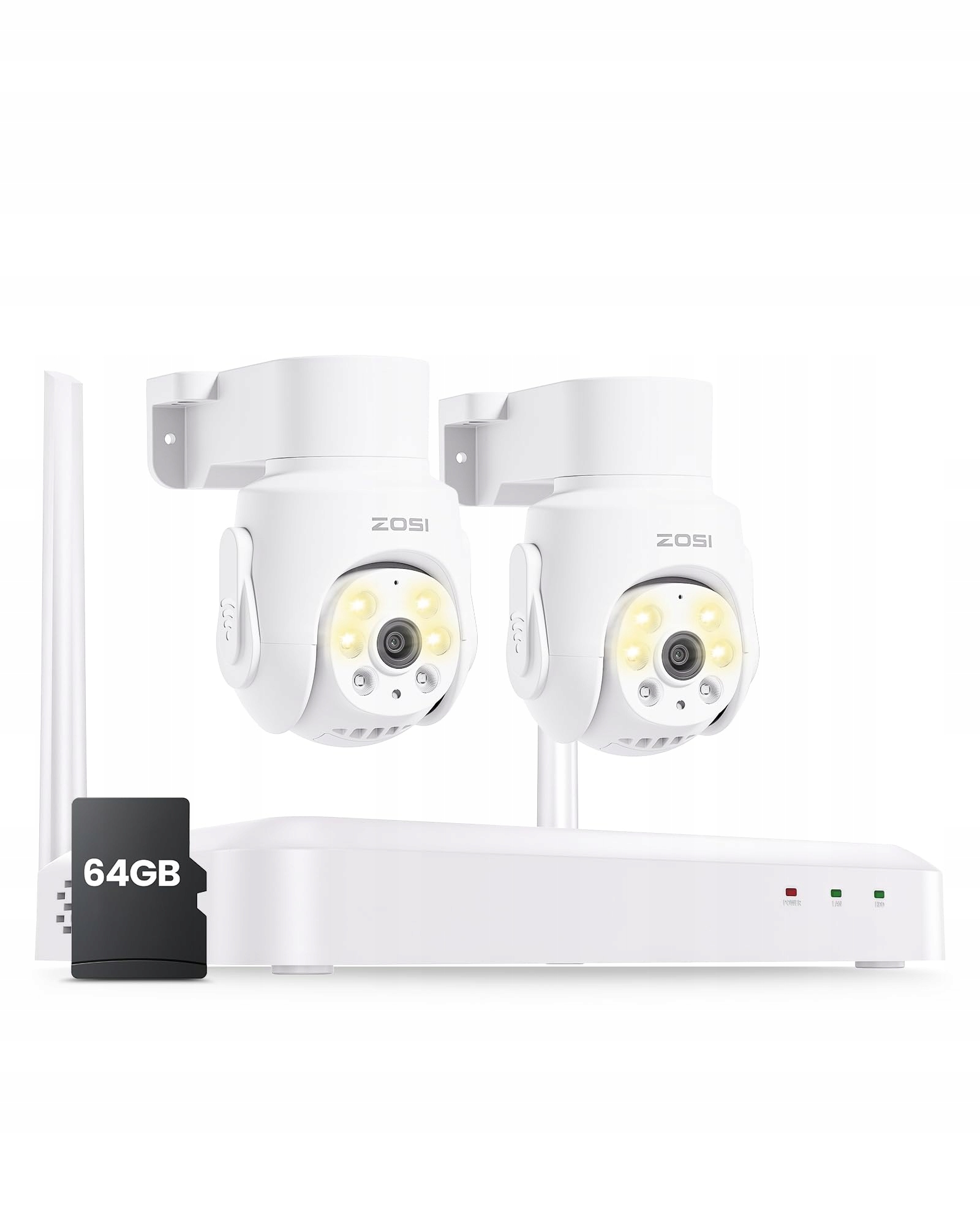ZOSI 3K 5MP Wi-Fi 6 Zestaw kamer monitoringu z 2X 360° PTZ kamerą Wi-Fi na zewnątrz, karta 64GB, śledzenie osób, kolorowe widzenie nocne, dwukierunkowe audio, C280