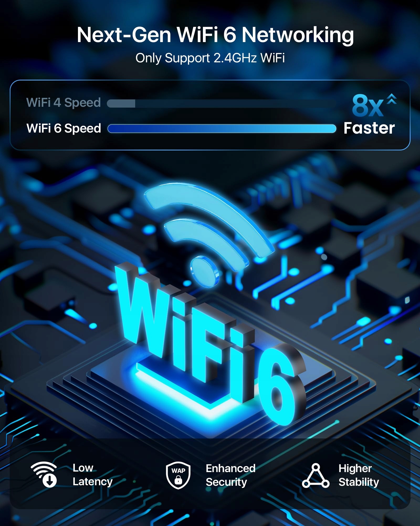 WiFi 6 – nowy standard monitoringu: Doświadcz zalet innowacyjnej technologii WiFi 6, która jest zintegrowana w naszym zestawie kamer C280. Ciesz się stabilniejszymi połączeniami, szybszym przesyłaniem wideo i zminimalizowanym opóźnieniem, idealnym dla nowoczesnego domu lub firmy. Dla optymalnej wydajności zalecamy korzystanie z routera obsługującego WiFi 6.