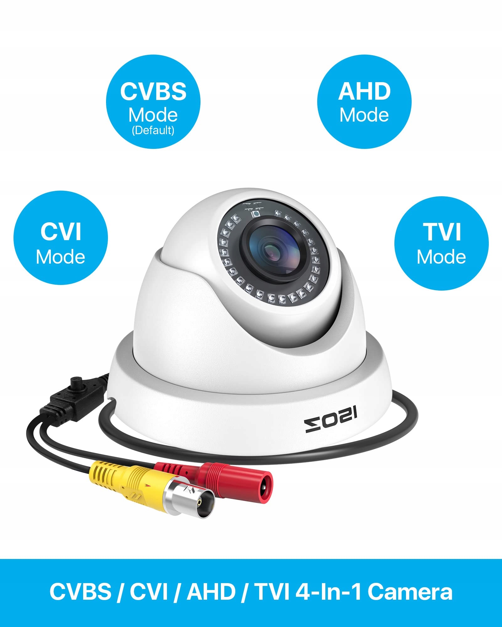 [2.0MP HD 1080P 4-w-1 Kamera Bezpieczeństwa]-- To jest kamera kopułowa 4-w-1 TVI/CVI/AHD/CVBS. Kompatybilna z 960H, 720P, 1080P, 3MP, 5MP, 8MP, 4K HD-TVI, AHD, CVI i CVBS/960H analogowymi DVR-ami.