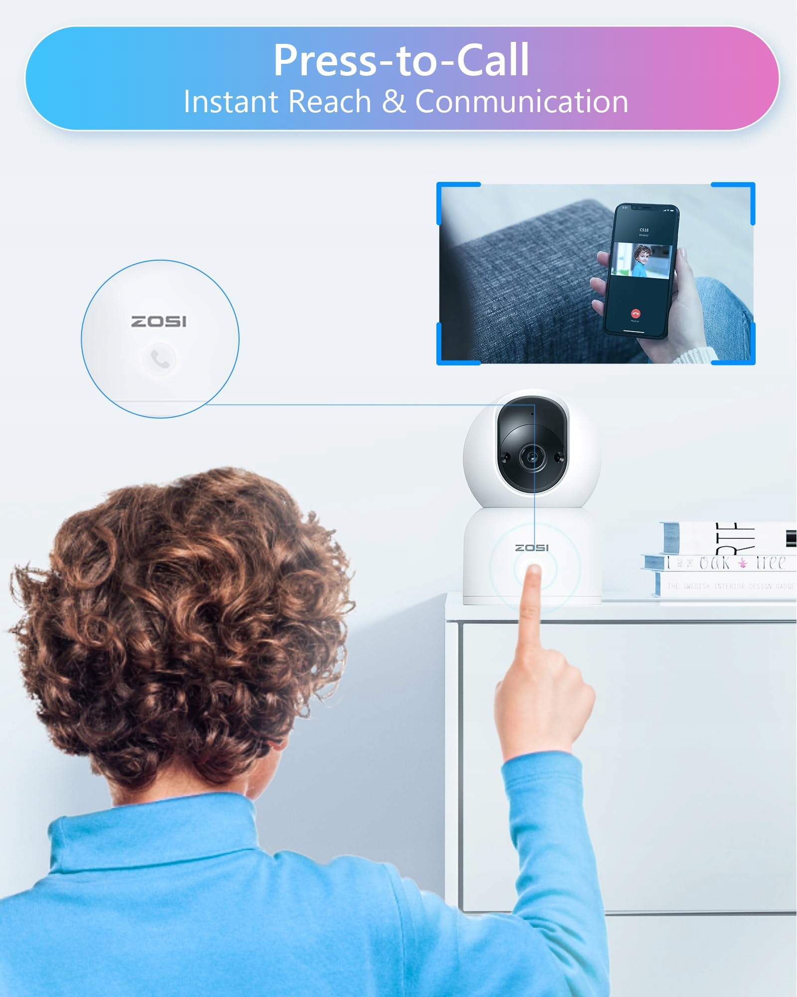 Kamera monitorująca ZOSI 2K WLAN wewnętrzna, kamera obrotowa 360° do użytku wewnętrznego dla dzieci, WiFi 2,4/5Ghz, rozpoznawanie osób AI, automatyczne śledzenie, połączenie jednym dotknięciem, C518