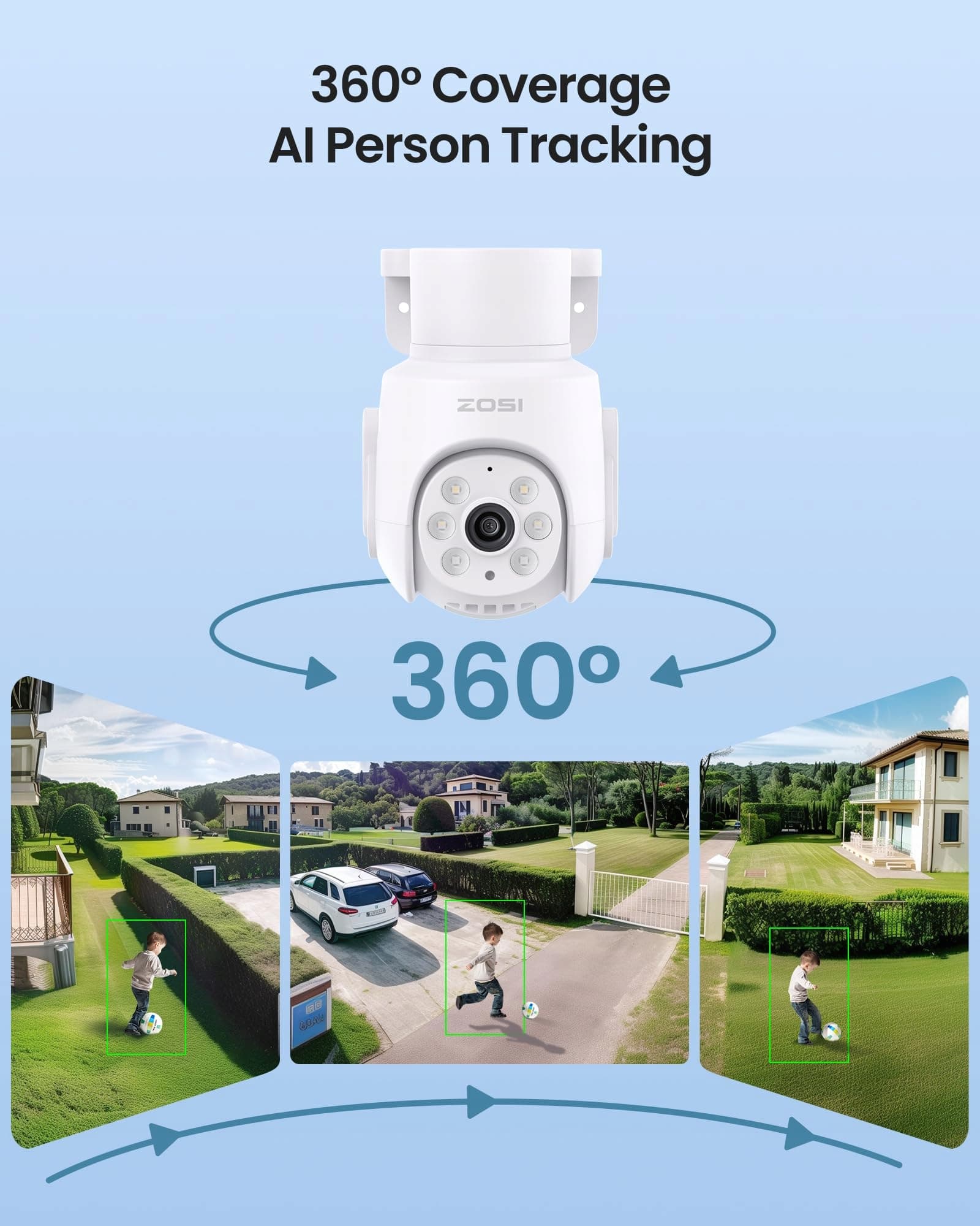 ZOSI Kamera 5MP WiFi 6 360° PT Detekcja Osób i Pojazdów Nocne Widzenie | Premium Supply