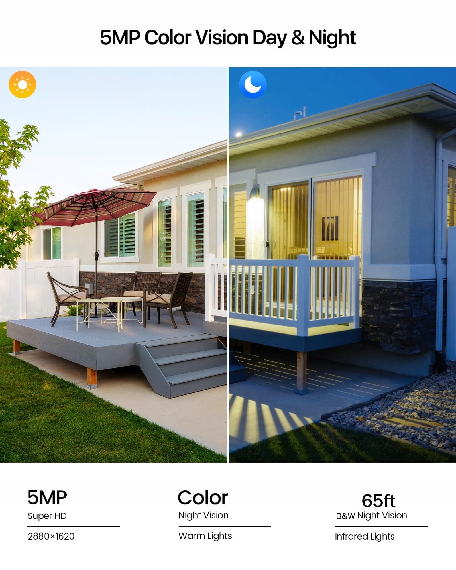 5MP Super HD i kolorowe widzenie nocne: Odkryj oszałamiające detale w ultraczystej jakości 5MP dzięki naszej kamerze do monitoringu WiFi 6. Kamera umożliwia również kolorowe widzenie nocne, dzięki czemu nawet przy słabym oświetleniu otrzymujesz ostre obrazy. Idealna do monitoringu wejść, ogrodów i wnętrz.
