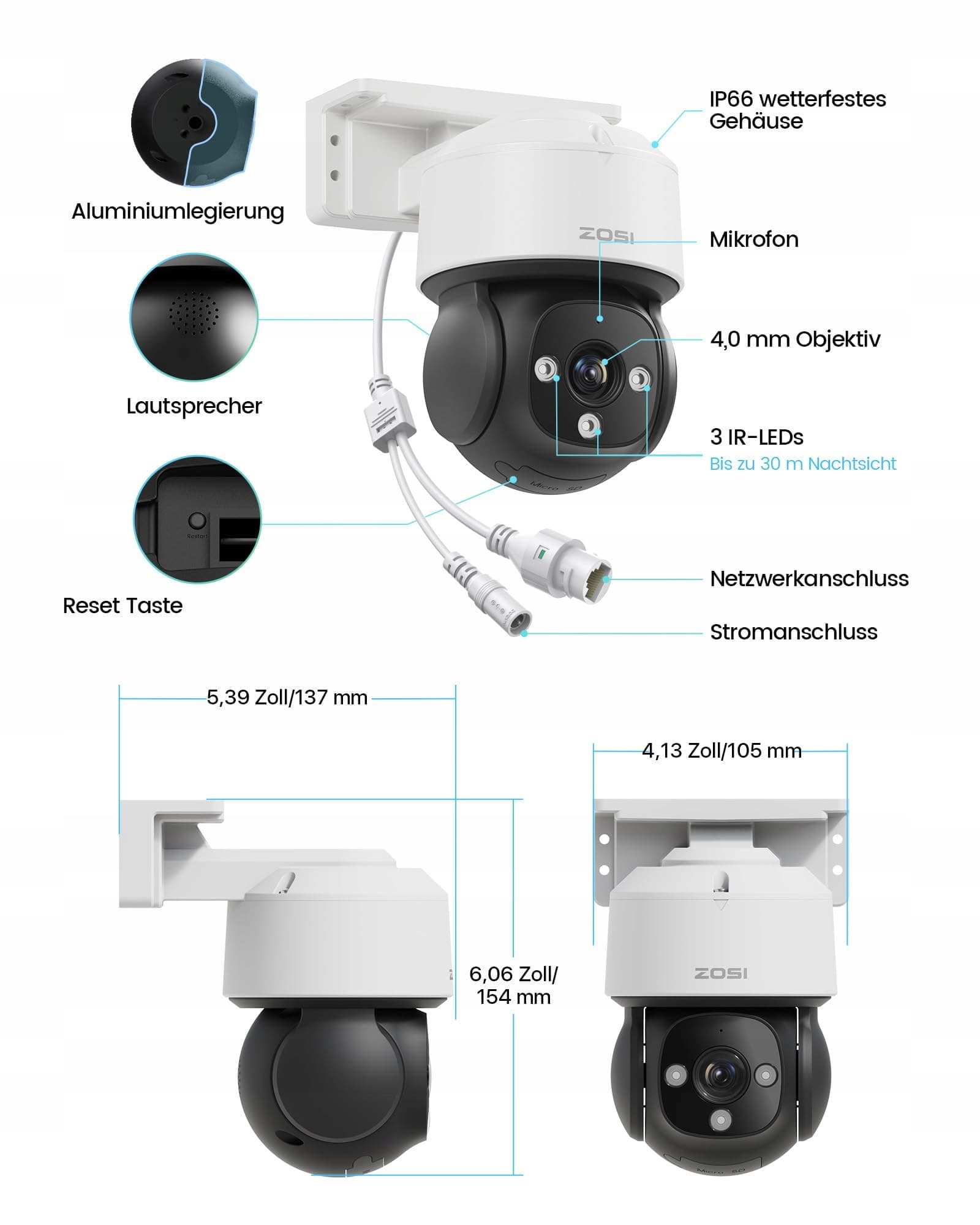 𝗪𝗮𝗿𝘁𝗼𝘀́𝗰𝗶𝗼𝘄𝗲 𝗶𝗻𝗳𝗼𝗿𝗺𝗮𝗰𝗷𝗲 𝗼 𝗸𝗼𝗺𝗽𝗮𝘁𝘆𝗯𝗶𝗹𝗻𝗼𝘀́𝗰𝗶: Ta kamera IP C290 działa wyłącznie z rejestratorami ZOSI 4K NVR. Nie jest przeznaczona do samodzielnej pracy i wymaga kompatybilnego systemu ZOSI NVR do nagrywania i sterowania. Idealna do rozbudowy systemu lub jako wymiana (zamiennik lub dodatek) do istniejącego systemu ZOSI 4K PoE NVR.
