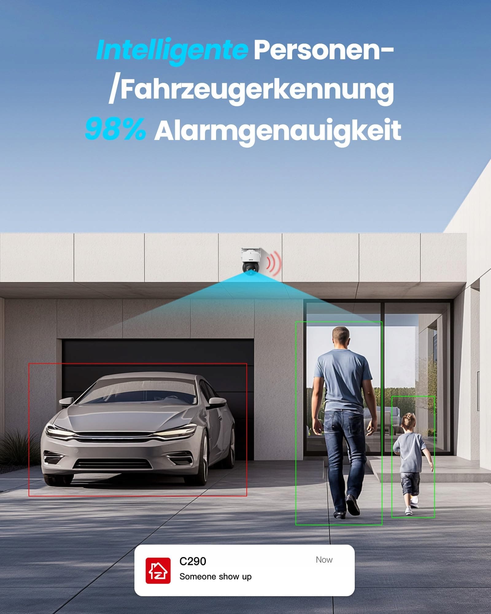 𝗥𝗼𝘇𝗽𝗼𝘇𝗻𝗮𝘄𝗮𝗻𝗶𝗲 𝗼𝗽𝗮𝗿𝘁𝗲 𝗻𝗮 𝗦𝗜: Kamera PTZ precyzyjnie wykrywa osoby, pojazdy oraz zdefiniowane strefy (włamanie, nieobecność itp.) i redukuje fałszywe alarmy. W przypadku podejrzanej aktywności można za pomocą aplikacji wysyłać ostrzeżenia lub uruchomić wbudowaną syrenę odstraszającą.