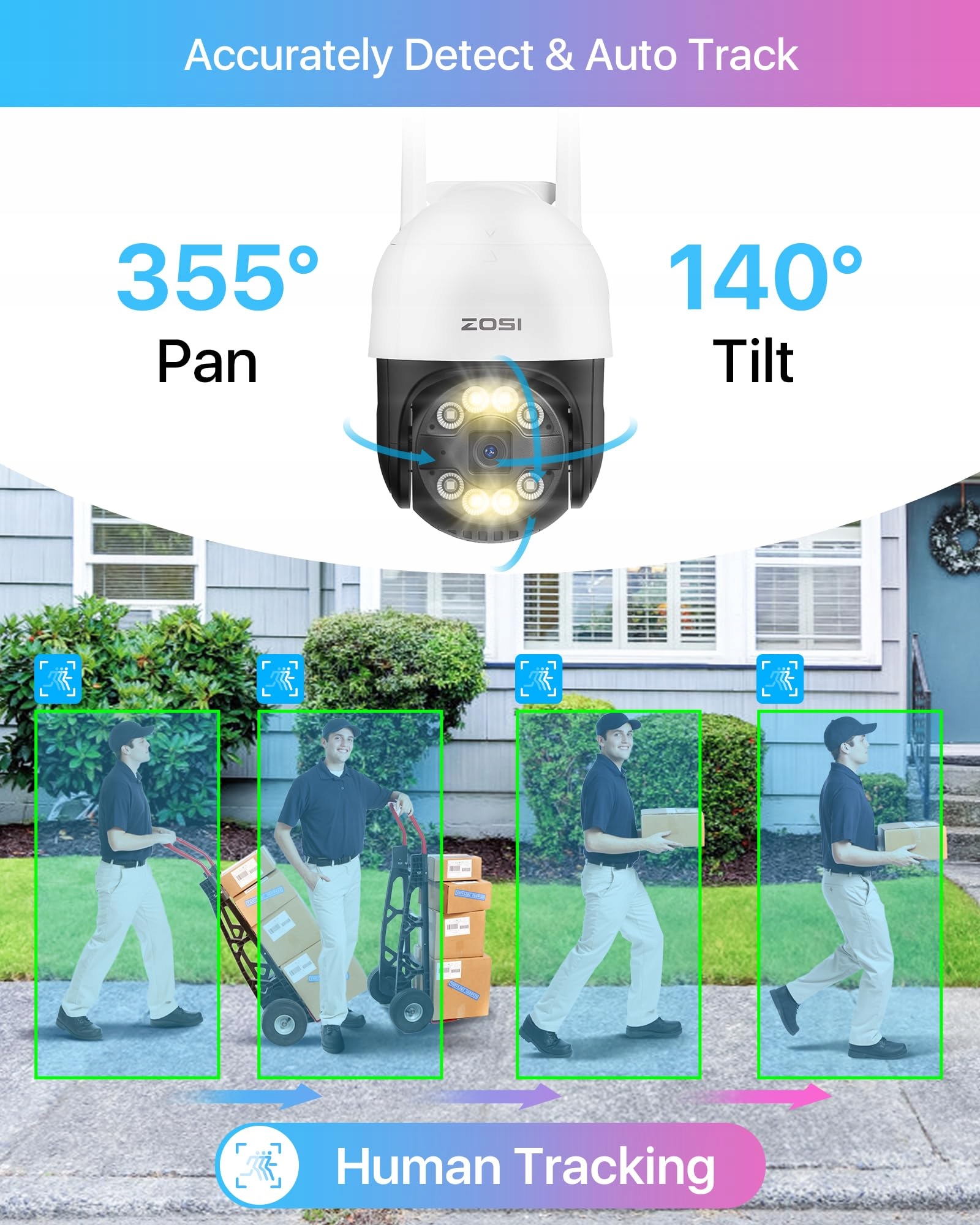 ZOSI Kamera Zewnętrzna 4MP WiFi 360° AI Detekcja Ruchu Audio 2-Way | Premium Supply