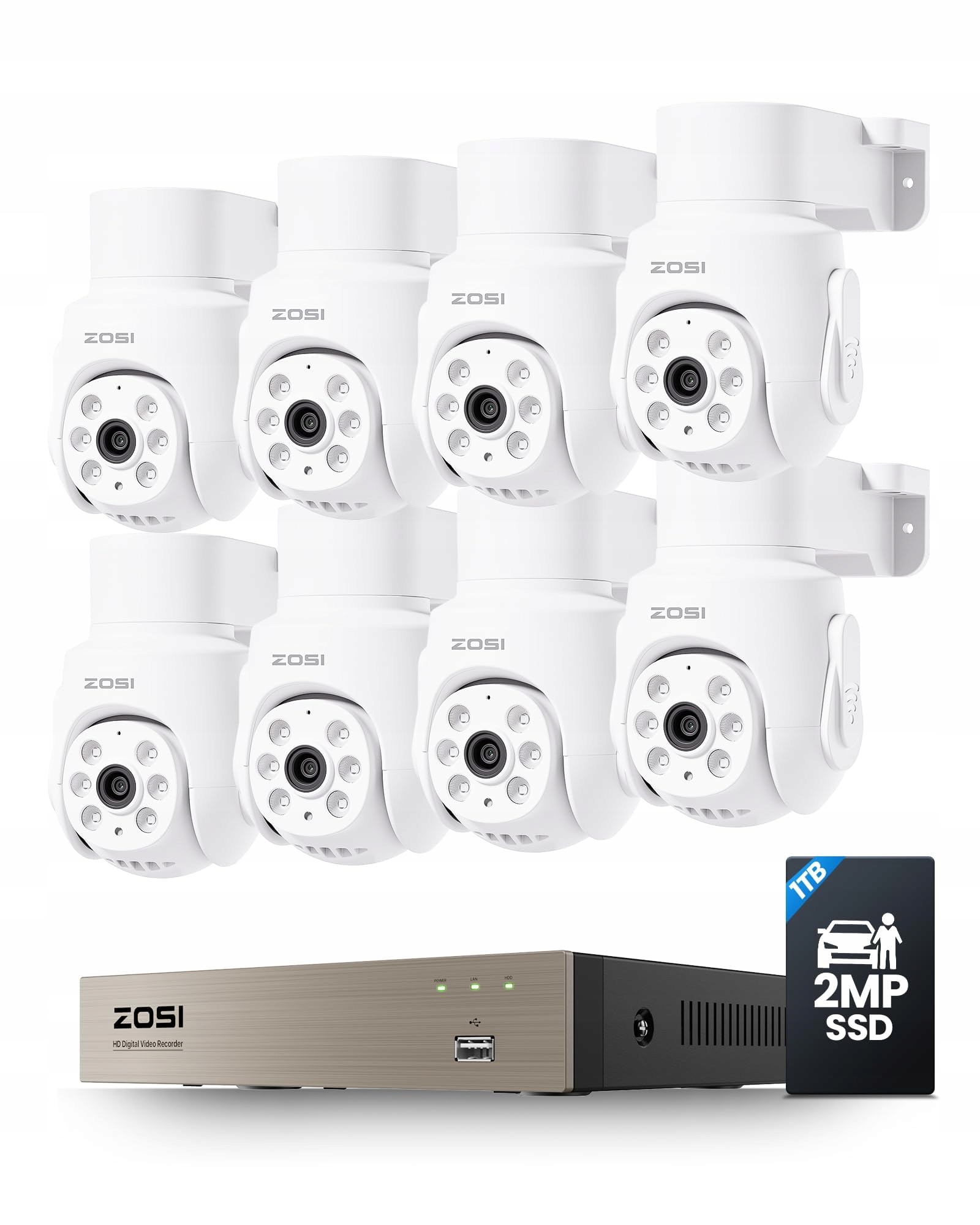 ZOSI Przewodowy 2MP PTZ Zestaw Kamer Monitoringu Zewnętrznego z Audio, 8CH 5MP 1TB DVR, AI Wykrywanie Osób/Samochodów, Zestaw Kamer Do Monitoringu Domu/Biura/Sklepu