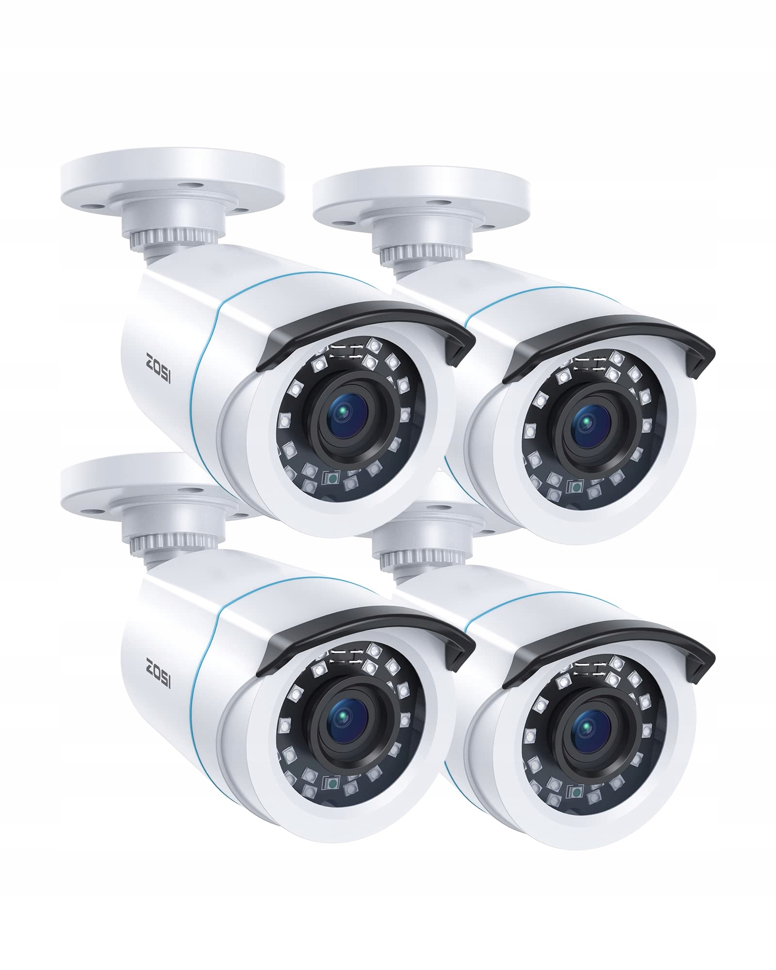 ZOSI Zestaw 4 Kamer 2MP 1080P Zewnętrznych z Zasilaczem i Kab. Wideo | Premium Supply