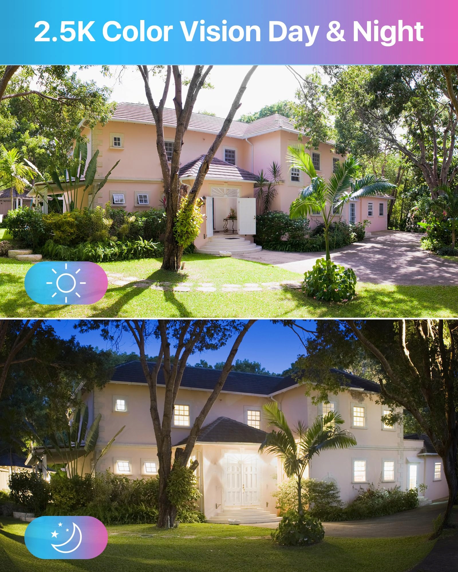 [Błyskotliwa rozdzielczość 2,5K i kolorowa nocna wizja] Doświadcz ostrego obrazu 4MP dzięki naszemu wysokorozdzielczemu zestawowi kamer monitoringu na zewnątrz. Dzięki inteligentnemu trybowi nocnej wizji uzyskasz kolorowe i wyraźne nagrania nawet w ciemności. Odkryj prawdziwe piękno bezpieczeństwa.