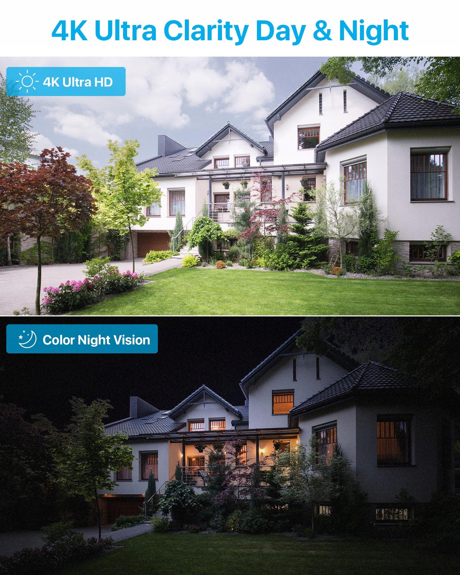 𝟒𝐊 𝐔𝐋𝐓𝐑𝐀 𝐇𝐃 𝐑𝐨𝐳𝐝𝐳𝐢𝐞𝐥𝐜𝐳𝐨ś𝐜́: System kamer do monitoringu PoE zapewnia szczegółową jakość obrazu 4K UHD, oferującą ostry obraz oraz szeroki kąt widzenia w formacie panoramicznym do 90 stopni. Format wideo 16:9 wypełnia Twoje pole widzenia w pełni. Możesz wyraźnie rozpoznać ważne detale, takie jak twarze i logotypy.