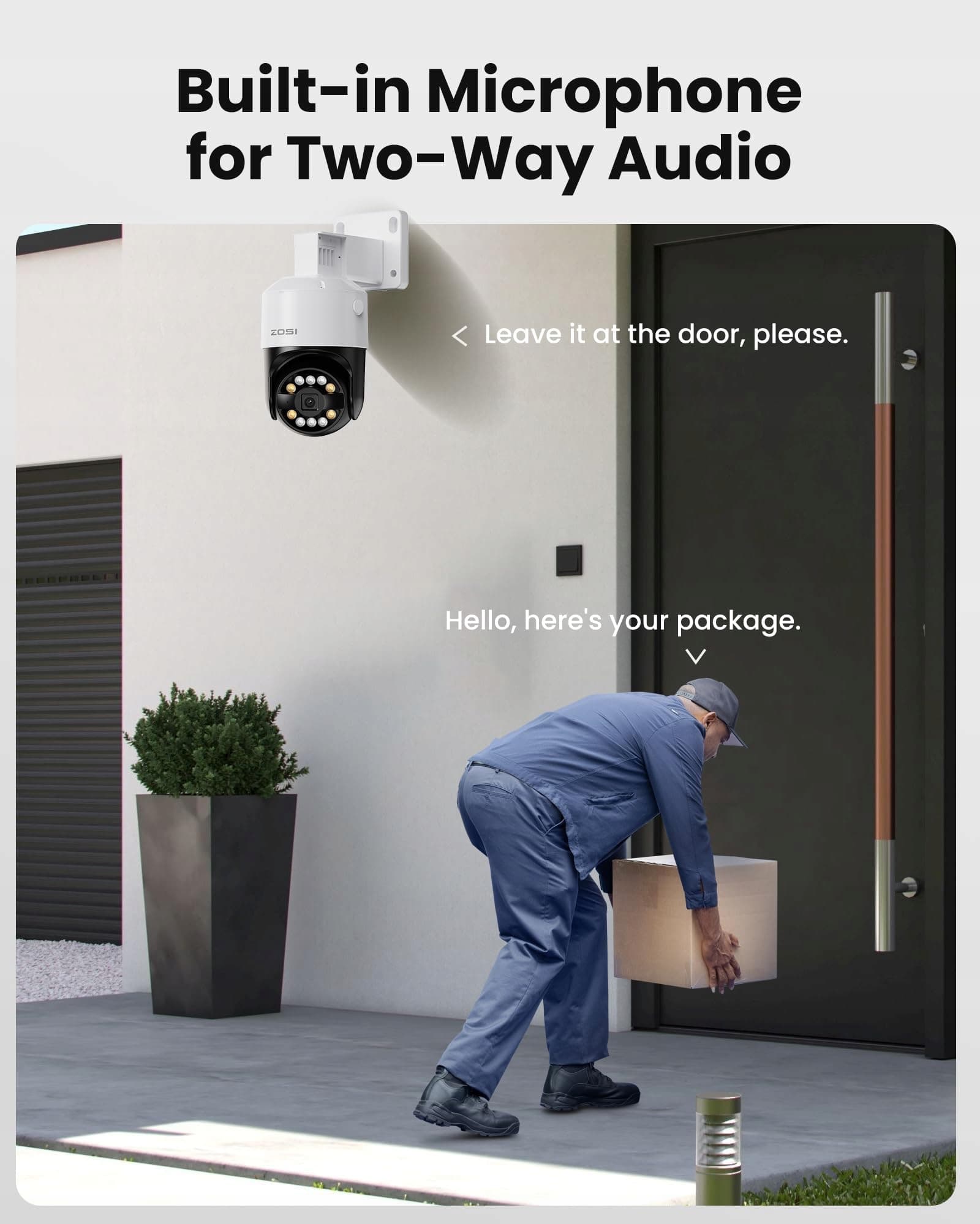Dwukierunkowe audio: Dzięki wbudowanemu mikrofonowi i głośnikowi możesz zarówno nagrywać dźwięk, jak i rozmawiać z osobą przed kamerą PoE. Możesz także odstraszyć włamywaczy głośną syreną.