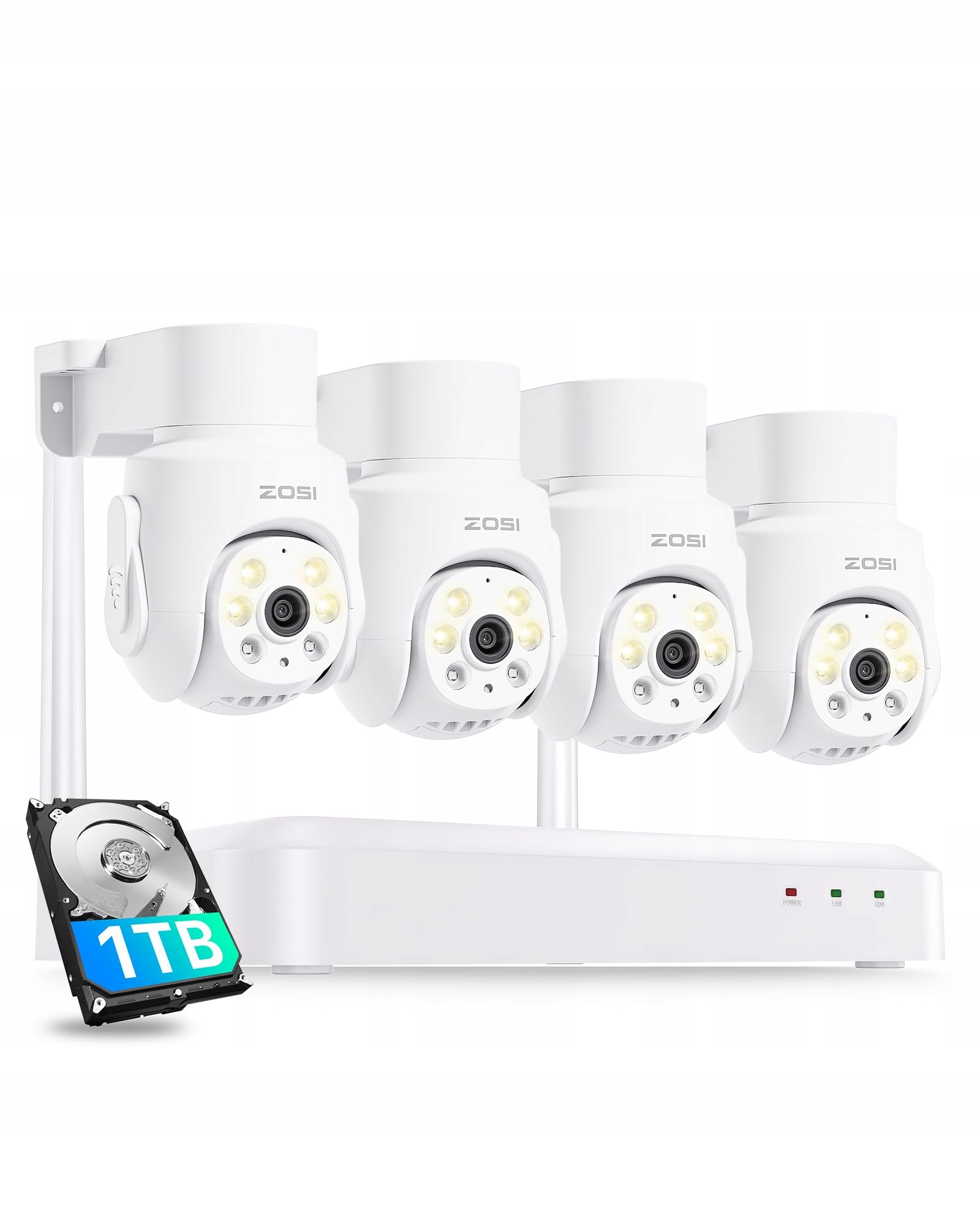 ZOSI 5MP Wi-Fi 6 Zestaw kamer do monitoringu z dyskiem 1TB HDD, 4X 360° PTZ Kamera WLAN na zewnątrz, wykrywanie i śledzenie osób, kolorowa nocna wizja, dwukierunkowe audio, C280