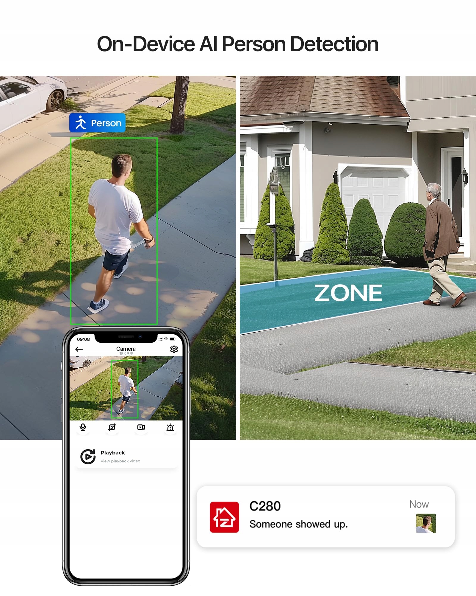 Kompaktowy design: Nasza mała kamera zewnętrzna C280 daje Ci możliwość łatwego montażu na ścianach lub sufitach – zgodnie z Twoimi indywidualnymi potrzebami. To dyskretne rozwiązanie sprawia, że bezpieczeństwo domu pozostaje proste, a jednocześnie skuteczne. Masz wiele opcji umiejscowienia, aby wykorzystać najlepsze kąty widzenia do monitoringu.