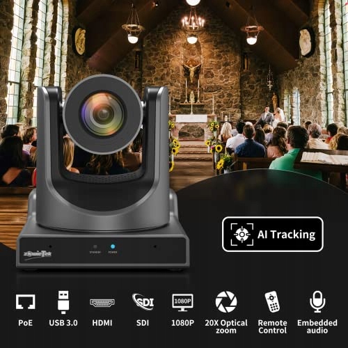 ZOWIETEK Kamera PTZ AI PoE 20x Zoom SDI HDMI USB Streaming IP Wydarzenia