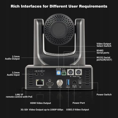Bogate interfejsy: Obsługuje jednoczesne wyjścia SDI, HDMI i USB 3.0, używaj jej jako super wysokiej jakości kamery internetowej z USB 3.0 do Zoom, Teams, Meet, Chime, Messenger i Skype, a także możesz używać jej jako kamery produkcyjnej z połączeniem wideo nadawczego (SDI, HDMI).