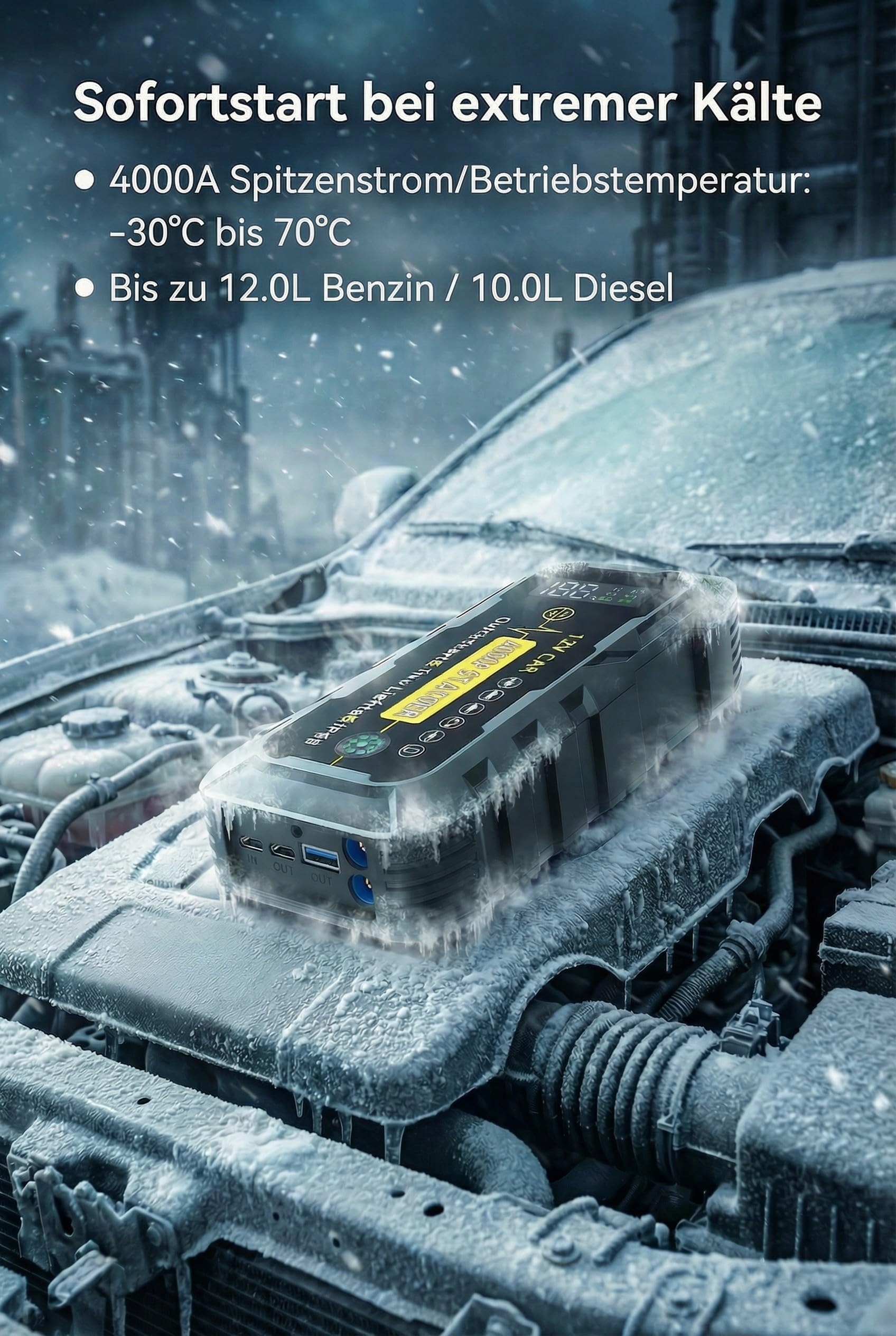 MOCNA ROZRUCHOWA POWERBANKA DO AKUMULATORA SAMOCHODOWEGO (3000A): Zuquik A25 to coś więcej niż zwykła powerbank do rozruchu. Z prądem szczytowym 3000A ten booster do rozruchu samochodu uruchomi prawie wszystkie pojazdy 12V (do 8,0L benzyny/6,0L diesla) w kilka sekund – nawet przy -30°C w najzimniejszej zimie. Idealny do samochodów osobowych, SUV-ów i dostawczych