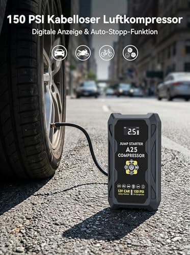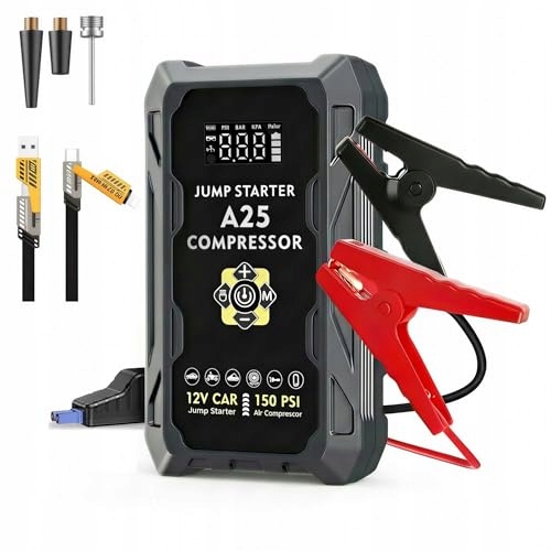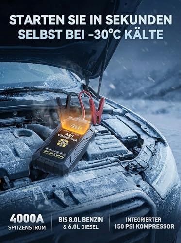 Zuquik Auto Starthilfe Powerbank,4000A Booster Auto Starthilfe für PKW (8.0L Benzin/6.0L Diesel),12V Jump Starter Auto & Autostarter Powerpack (A25 (mit Kompressor, 37000mWh))