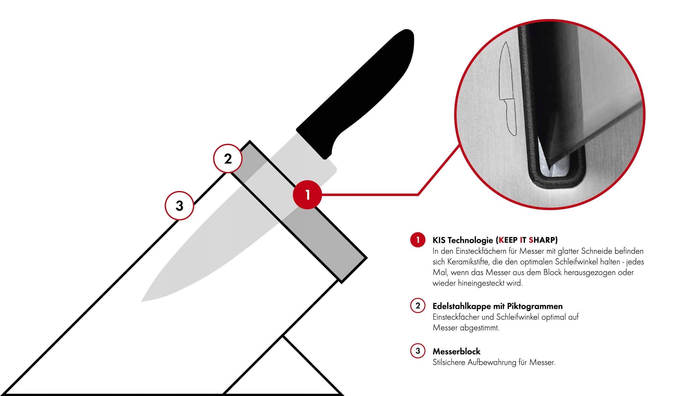 Wysokiej jakości noże: Długotrwała ostrość, stabilne i elastyczne dzięki hartowanej lodowo ostrzu FRIODUR, ergonomiczne rączki, trzpień z wbudowaną osłoną na palce