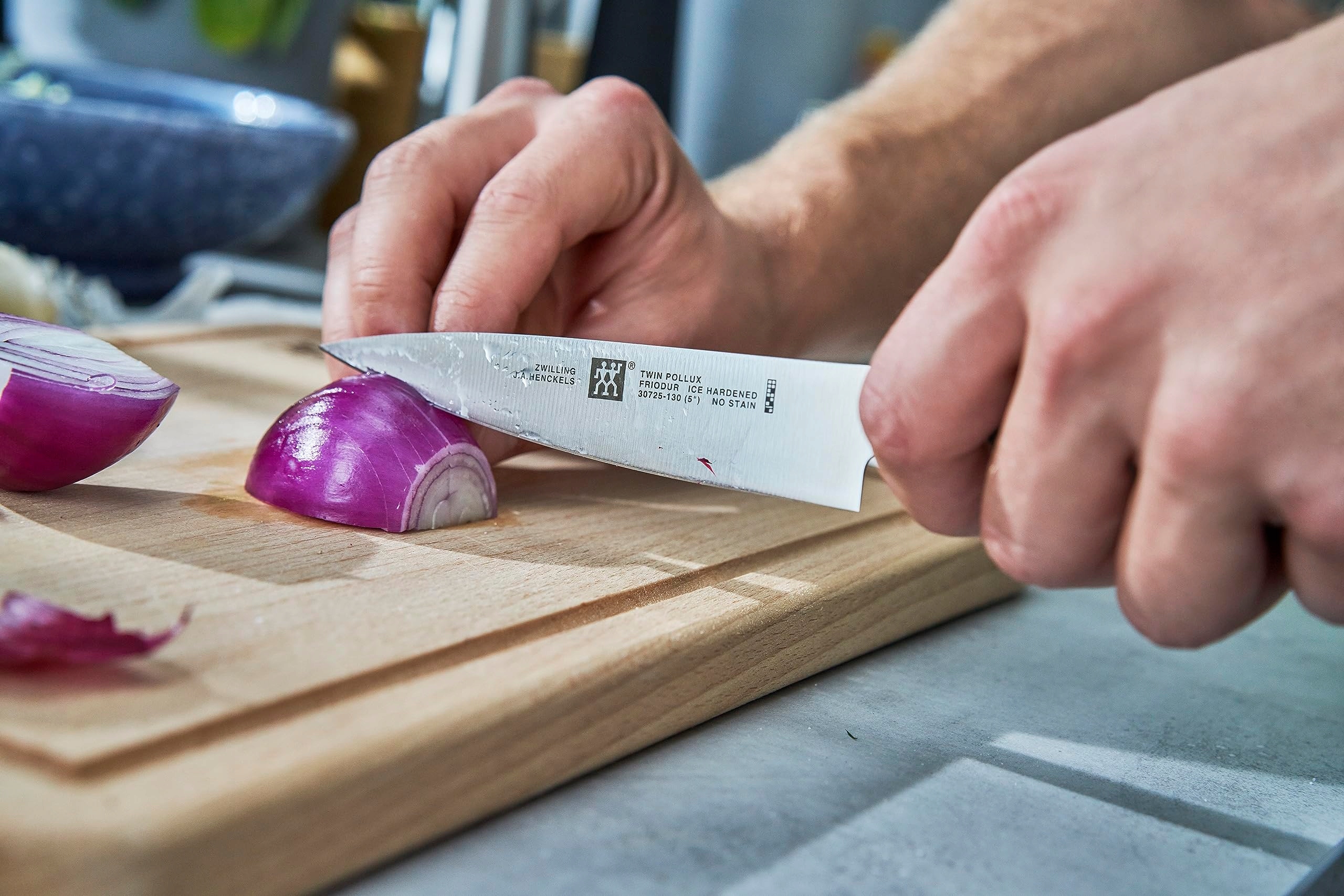 Wygodne i bezpieczne użytkowanie: ergonomiczny i antypoślizgowy uchwyt, zrównoważony rozkład wagi ostrza i uchwytu dla swobodnego krojenia