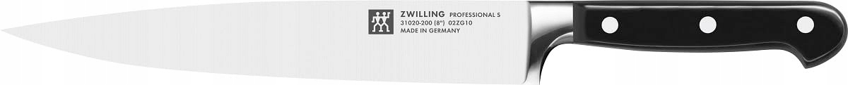 Zakres dostawy: 1x blok noży ZWILLING Professional S, 8-częściowy, 1 nóż do obierania/garnier (10 cm/65 g), 1 nóż uniwersalny (13 cm/75 g), 1 nóż do mięsa (20 cm/143 g), 1 nóż kuchenny (20 cm/257 g), 1 nóż do chleba (20 cm/160 g), 1 ostrzałka, 1 blok noży, 1 uniwersalne nożyczki (20 cm), Materiał: stal nierdzewna/uchwyty z tworzywa sztucznego, 1002341
